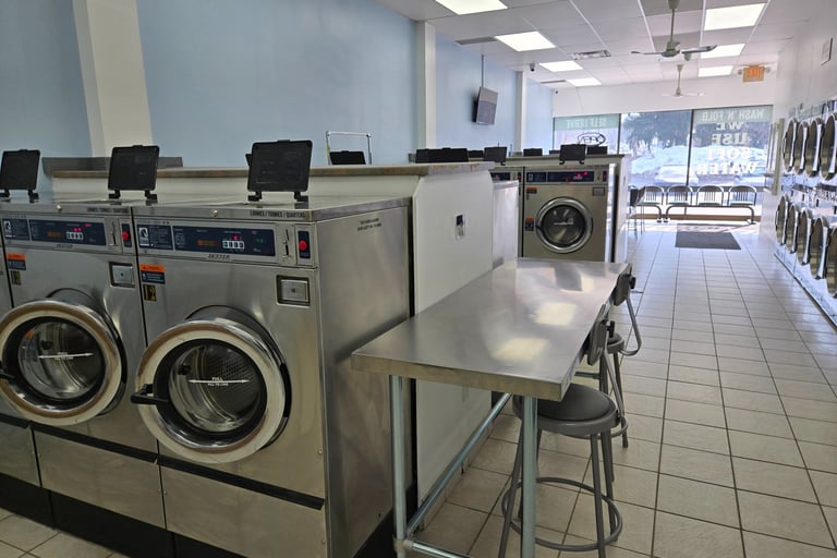 Our self‑service coin laundry is designed for customers who want a dependable, budget‑friendly place to get their laundry done on their own schedule. At Suds & Bubbles, we keep things simple: clean machines, fair pricing, and a comfortable space that works for everyone. Bright, clean, and easy to use—our laundromat is designed to make laundry day stress‑free. Pay with traditional coins or convenient mobile payment for a smooth, hassle‑free experience.