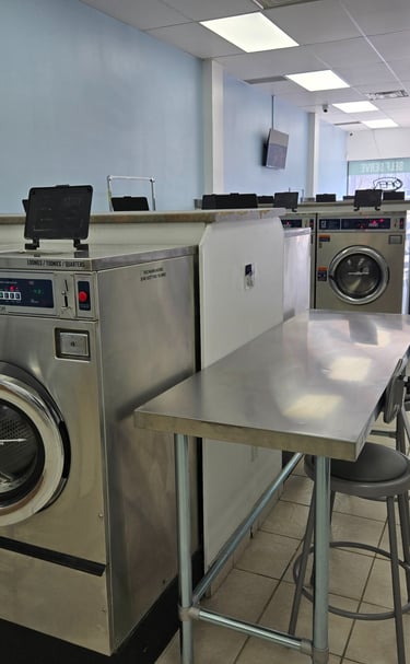 Our laundromat is CLEANED DAILY to ensure a bright, fresh, and welcoming space every time you visit. With modern, well‑maintained machines and a comfortable layout designed for convenience, Suds & Bubbles offers a reliable place to handle all your laundry needs. Whether you’re stopping in for a quick wash or tackling a full week’s worth of clothes, you’ll appreciate the clean environment, updated equipment, and relaxed atmosphere that make laundry day feel a little easier.