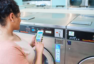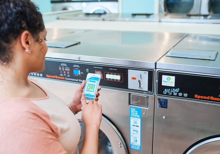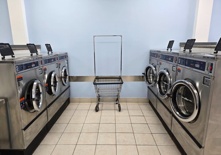 Clean, modern self-service laundry with easy payment options.